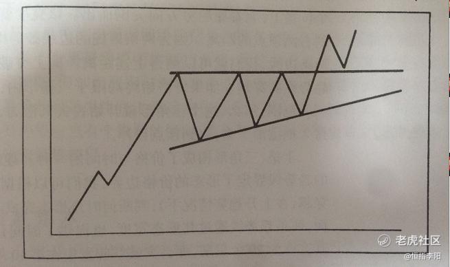 图2是上升三角形的例子。注意,其中上侧直线水平,而下侧直线上斜。一般来说,它属于看涨形态。