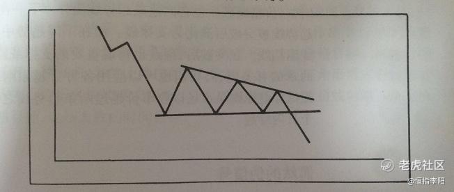 图3下降三角形的例子。注意,其中下边线水平,上边线下斜。它一般属于看跌形态。