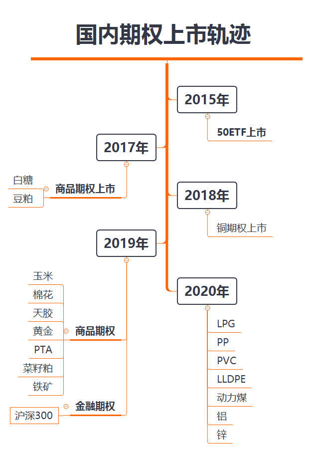 国内上市的场内期权越来越多,笔者特别做了个整理,如下图: