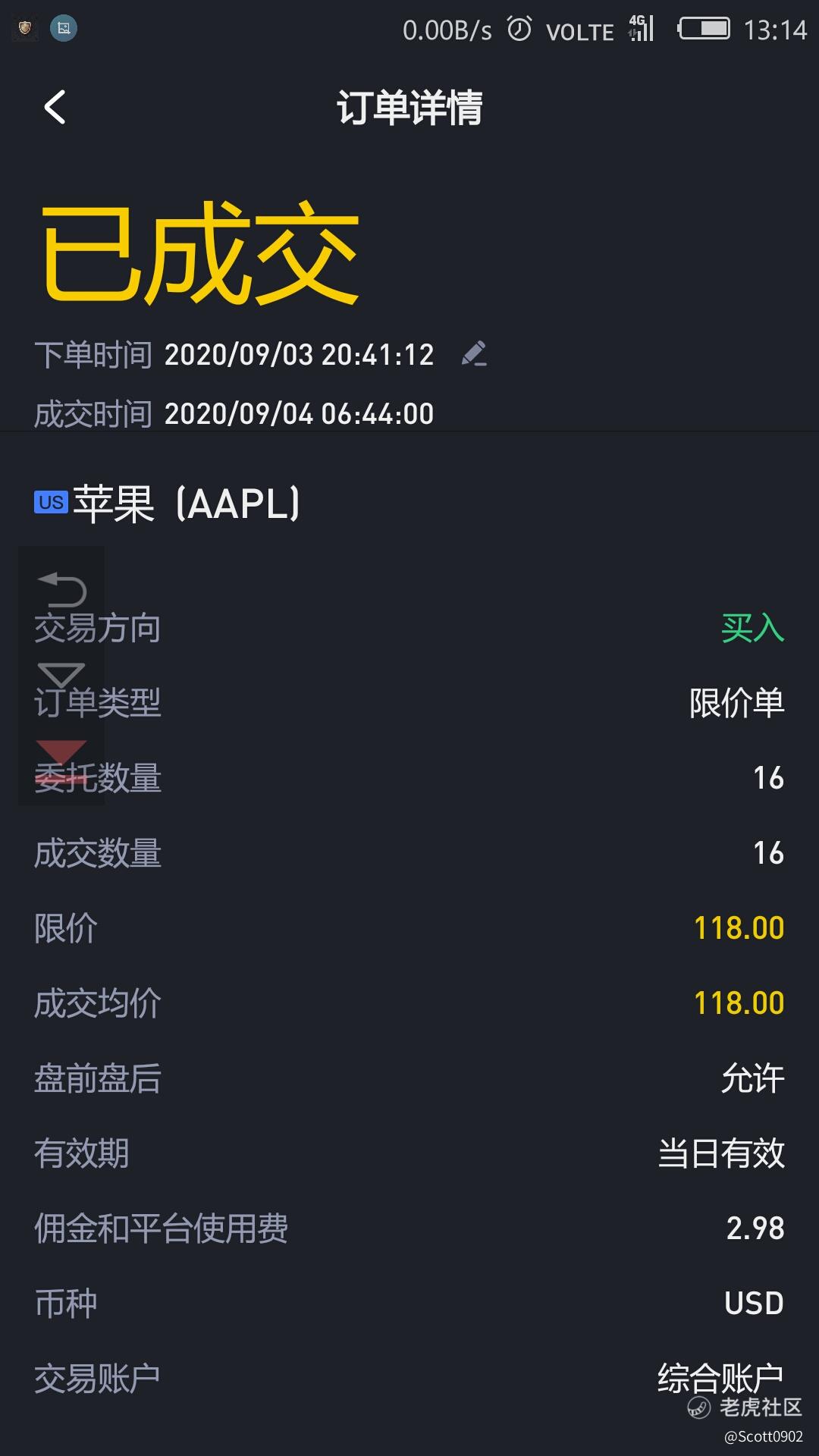 $苹果(AAPL)$昨晚盘前慌乱之中草草卖出,又觉得不服,随后下了限价单买入,今早意外地看到已经买入了。我钱很少,卖出15股的钱现在买入了16股,为自己壮胆,越挫越勇。