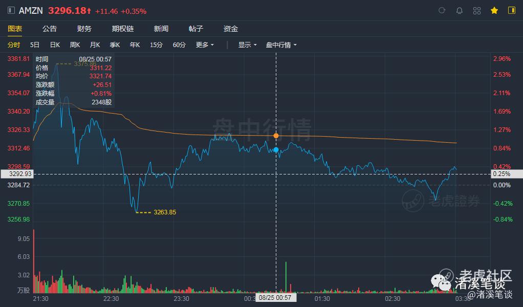 亚马逊日线图,这是什么走势,这就是一个火山喷发的形态,按技术分析来讲,今天早盘大涨配合大盘也不错就应该一顿暴涨,连续拉几天大阳线。但是却迎来个冲高回落,好像是假突破一般,是不是亚马逊没有上涨的价值?7月底的财报看亚马逊是美科技股巨头中最强势的,增长超预期pe比平苹果低,所以它迟早要涨上去。那么问题来了,该涨不涨。这不单 是亚马逊的问题,整个科技股版块都走低,fb今天还有利好出来,照样回调。但是传统价值股版块却涨势喜人。