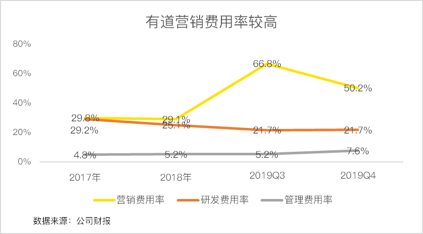 高昂的开支让净利润承压,4季度有道归属母公司的净利润为-2.02亿元,全年亏损6.02亿元,较2018年的2.09亿大幅扩大。