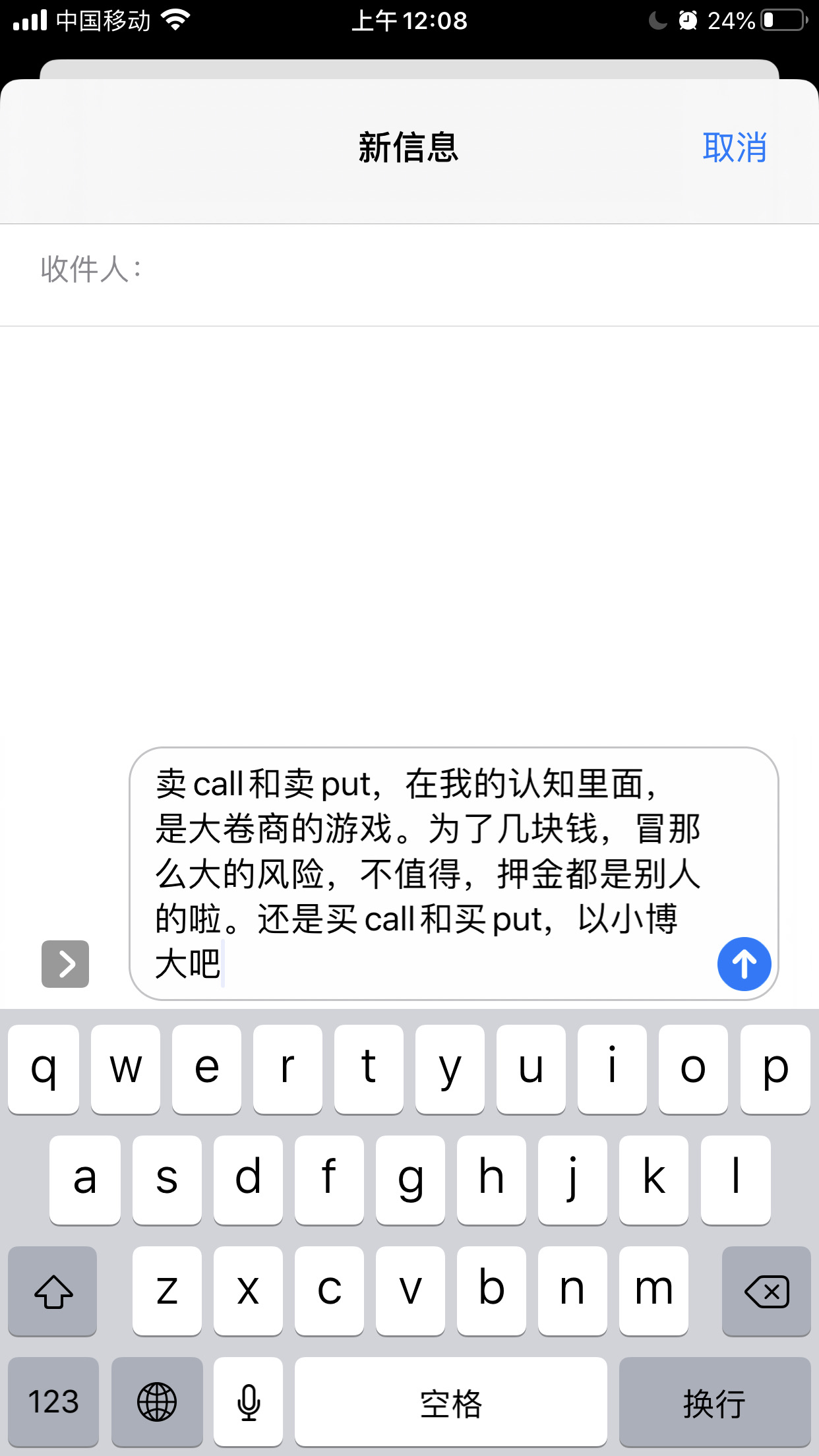 如果在没有正股的情况下,非常不建议裸卖,方向一旦做错了,亏损无限大。如果对期权的风险没有深刻理解,先只玩玩单纯的买call或者买put吧。