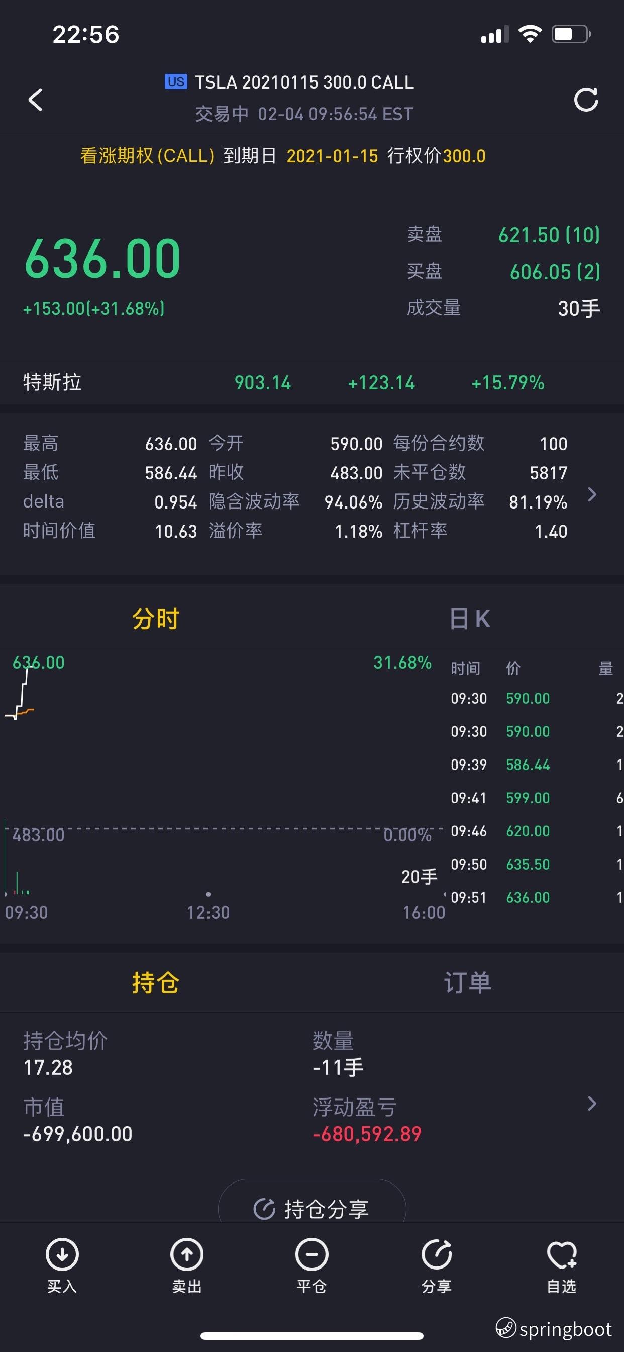 做空put 是看涨啊  买反了吧