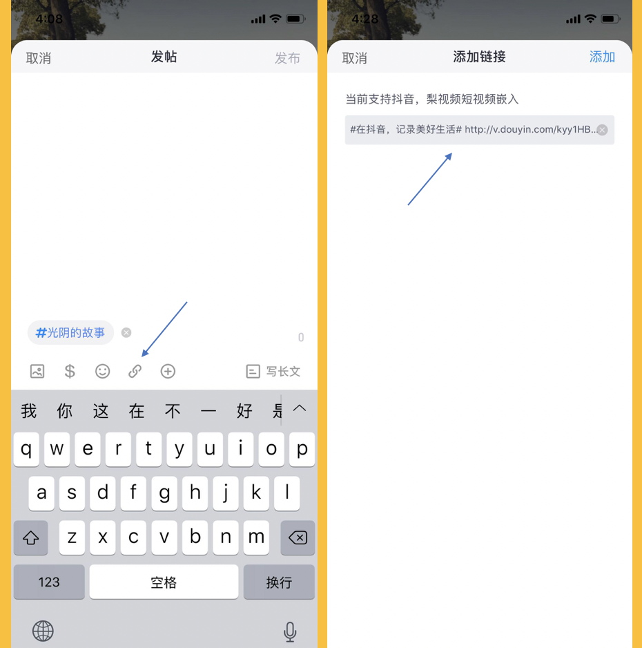 目前老虎支持梨视频及抖音的视频上传,添加视频的方式如下,首先在抖音/梨视频选择“复制链接”,然后在对应的页面选择粘贴链接即可。(小提示:横屏的视频展示效果更佳)快行动起来吧~
