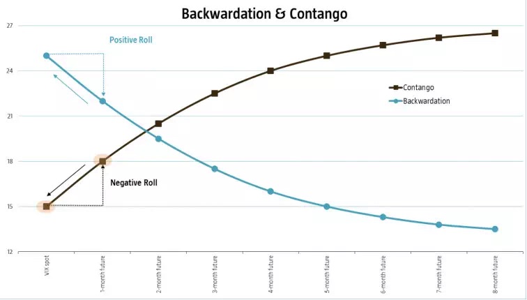 前面已经说过,VIX指数不像股票,可以以现货持有;为了做多VIX指数,你只能靠做多VIX期货来实现。期货不像股票一样可以永久持仓,都是有到期时间的,为了拥有一个固定期限的持仓,必须按照某种规则,持续不断地将临近到期的合约向远期移仓。