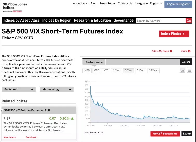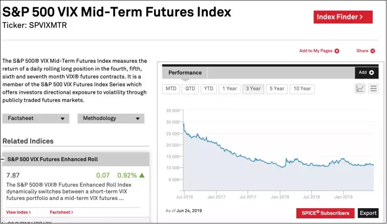 为了方便衡量这种固定期限的VIX期货持仓的收益情况,标普公司发布了很多VIX期货指数(S&P VIX Futures Indices),常见的有: