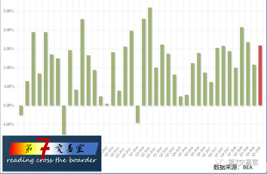 BEA的报告中,GDP的数据光鲜亮丽,一季度,美国国内生产总值(GDP)折合年率增长3.2%,创2018年三季度以来新高。