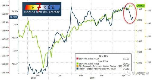 对了,最后提醒一个风险点,虽然在过去的一周里,各国央行都展现出了鸽派的态度,但统计得出的全球货币供应量却在持续向下,没有反弹的迹象,这和不断上涨的美股出现了背离,要知道,中国的货币供应预期可能已经改变了。