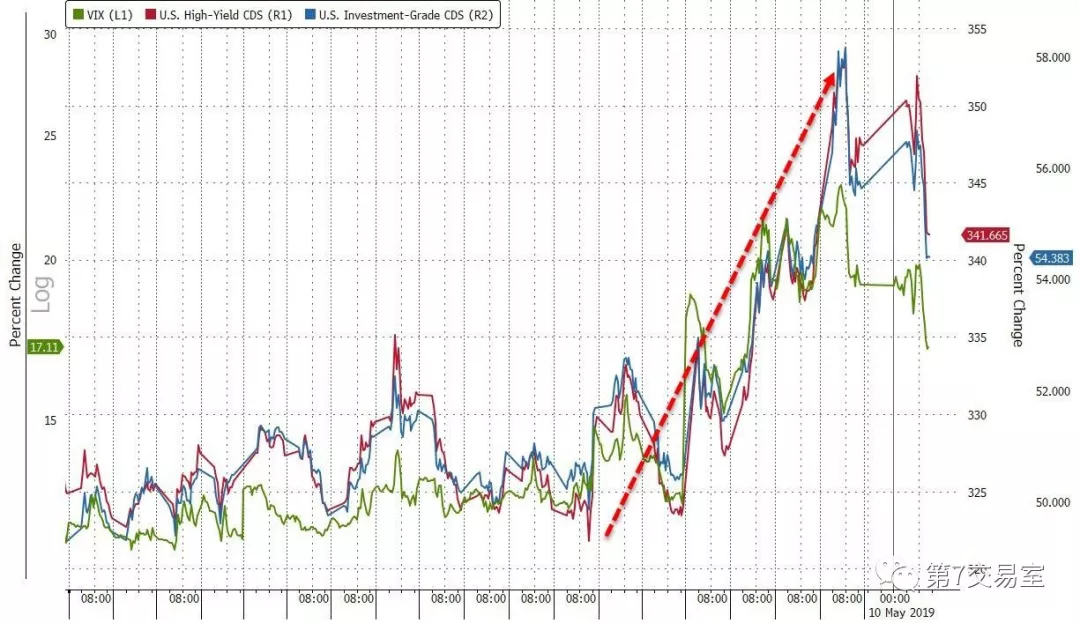 跟随VIX下跌的,还有美国高回报债券和投资级债券的CDS,这个衍生品常常被当成是对风险敞口的押注和对冲,他的上涨意味着风险增加,他的下跌,意味着风险的减弱。