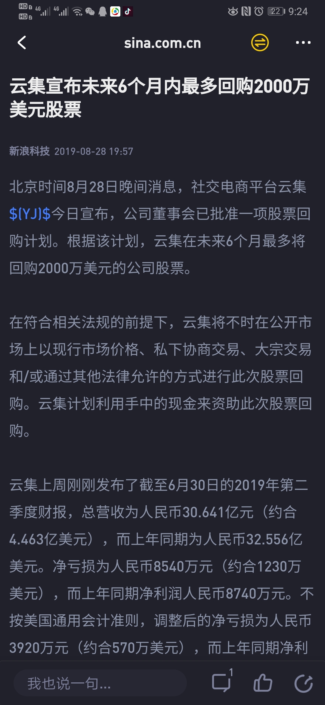 {"i18n":{"language":"zh_CN"},"data":{"magic":2,"id":994754075,"tweetId":"994754075","gmtCreate":1566998946197,"gmtModify":1704715475447,"author":{"id":3519721986379774,"idStr":"3519721986379774","authorId":3519721986379774,"authorIdStr":"3519721986379774","name":"超超爱超超","avatar":"https://static.laohu8.com/default-avatar.jpg","vip":1,"userType":1,"introduction":"","boolIsFan":false,"boolIsHead":false,"crmLevel":1,"crmLevelSwitch":0,"individualDisplayBadges":[],"fanSize":1,"starInvestorFlag":false},"themes":[],"images":[{"img":"https://static.tigerbbs.com/9f3097b688e6279360d88801baf0850e","width":"1080","height":"2340"}],"coverImages":[{"img":"https://static.tigerbbs.com/9f3097b688e6279360d88801baf0850e","width":"1080","height":"2340"}],"extraTitle":"","html":"<html><head></head><body><span><span><a href=\"https://laohu8.com/S/YJ\">$云集(YJ)$</a></span></span> ~<p><img src=\"https://static.tigerbbs.com/9f3097b688e6279360d88801baf0850e\" tg-width=\"1080\" tg-height=\"2340\"></p></body></html>","htmlText":"<html><head></head><body><span><span><a href=\"https://laohu8.com/S/YJ\">$云集(YJ)$</a></span></span> ~<p><img src=\"https://static.tigerbbs.com/9f3097b688e6279360d88801baf0850e\" tg-width=\"1080\" tg-height=\"2340\"></p></body></html>","text":"$云集(YJ)$ ~","highlighted":1,"essential":1,"paper":1,"likeSize":5,"commentSize":0,"repostSize":0,"favoriteSize":0,"link":"https://laohu8.com/post/994754075","repostId":0,"isVote":1,"tweetType":1,"viewCount":2936,"commentLimit":10,"likeStatus":false,"favoriteStatus":false,"reportStatus":false,"symbols":["YJ"],"verified":2,"subType":0,"readableState":1,"langContent":"EN","currentLanguage":"EN","warmUpFlag":false,"orderFlag":false,"shareable":true,"causeOfNotShareable":"","featuresForAnalytics":[],"commentAndTweetFlag":false,"andRepostAutoSelectedFlag":false,"upFlag":false,"length":11,"xxTargetLangEnum":"ORIG"},"commentList":[],"hasMoreComment":false,"orderType":2}