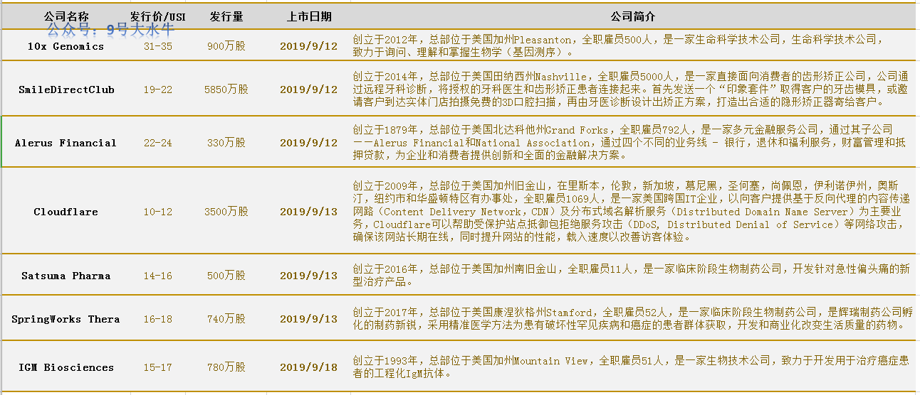 IGM Biosciences, Inc.(NASDAQ:IGMS)于8/19/2019递交IPO上市文件,计划于 9/18/2019 IPO上市登录纳斯达克,发行价$15.00 - $17.00美元,发行780万股,募资1.25亿美金,Jefferies/ Piper Jaffray/ Stifel/ Guggenheim Securities承销。