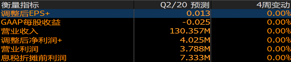 彭博预期Zoom本季度营收1.30亿美元,调整后EPS为0.013美元。