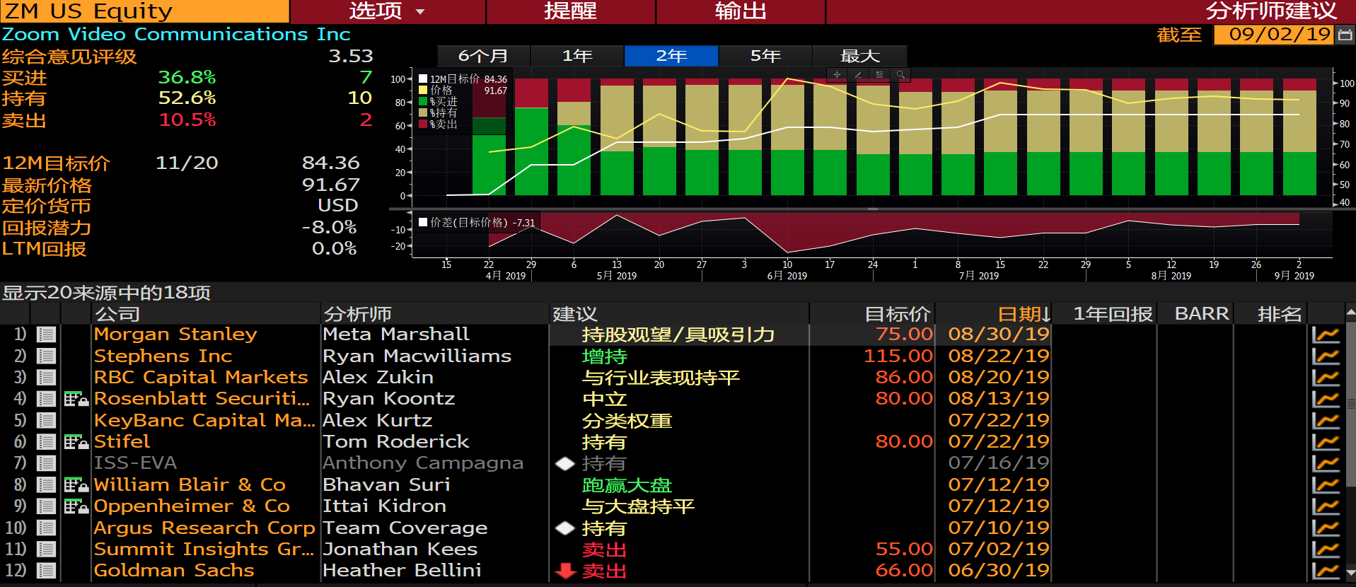 从彭博评级数据来看,19位覆盖分析师的平均目标价为84.36美元,其中7买进10持有2卖出评级。