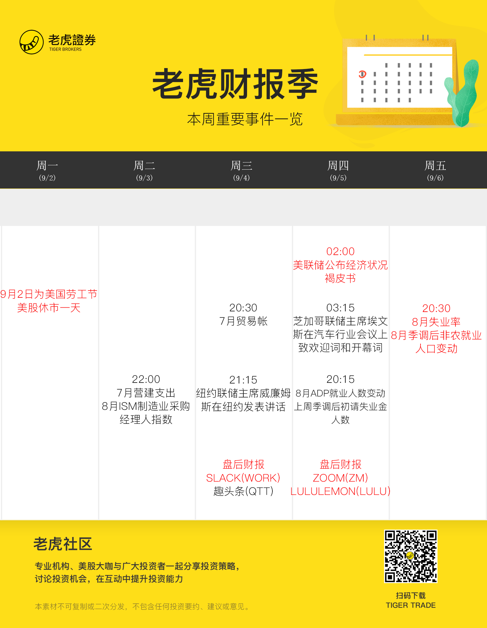 虎友们好~周一首先为大家贴出一周大事件,